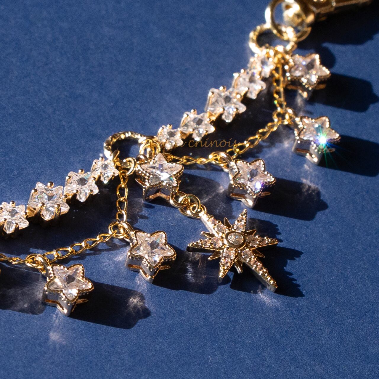 18の星々が輝く、ネックレスタイプのバッグチャームです。