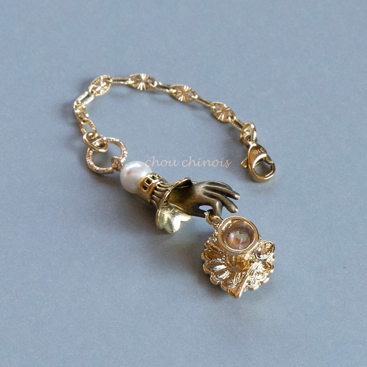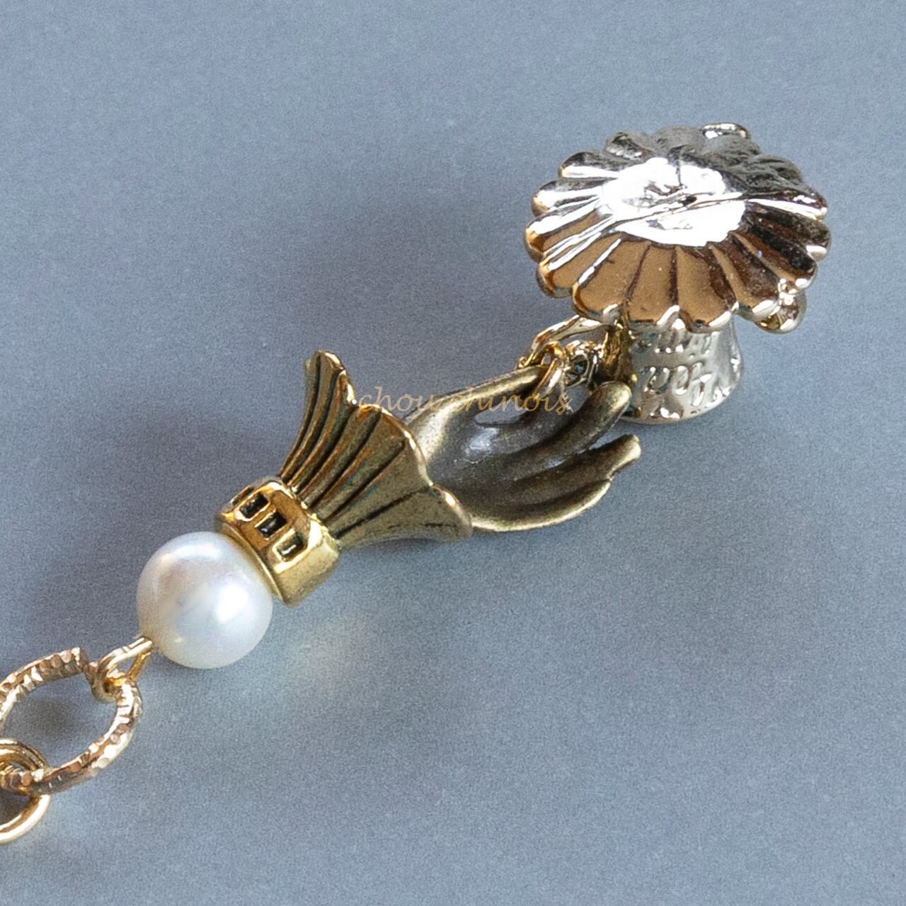 褐色のしなやかな指先にはロイヤルミルティを注いだティーカップ。ティータイムを愉しむレディをイメージしたポイントチャームです。よくよく見るとティーカップには「tea time」と刻まれています。