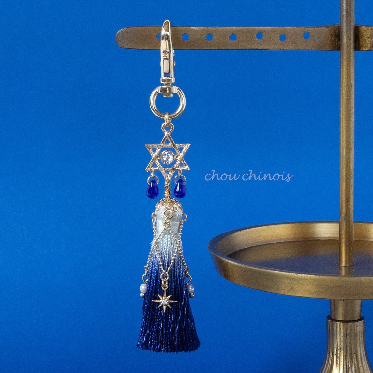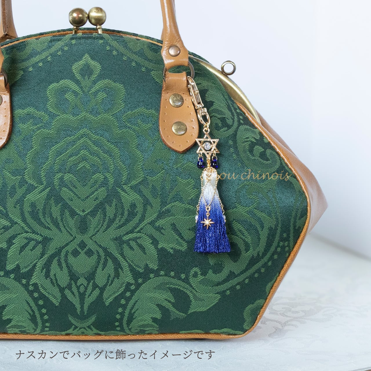 手染め作家さんの美しいいグラデーションタッセルに星モチーフを散りばめたチャームです。