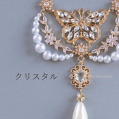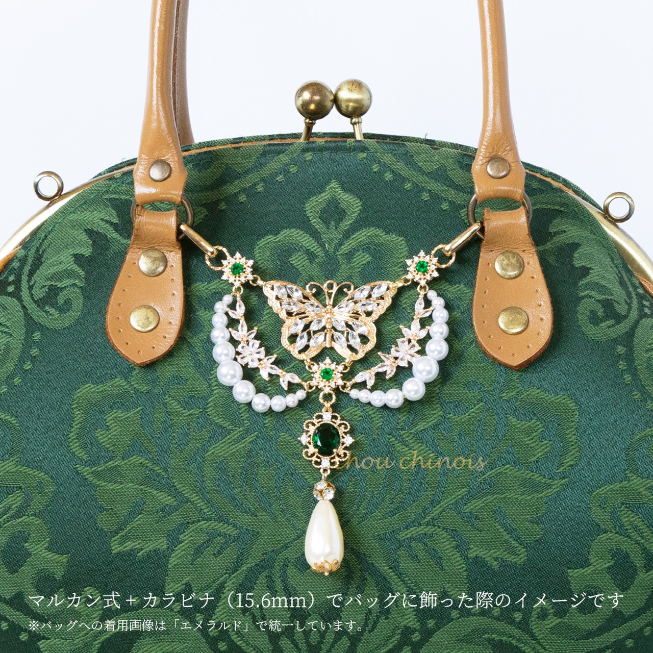 大きく翅を広げた蝶に花々やパール調ビーズを添えて