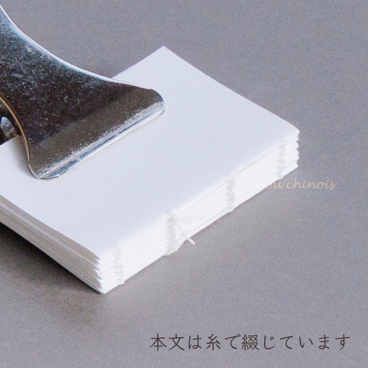 本文はホワイトクリーム色の無地紙を糸綴じで束ねています。