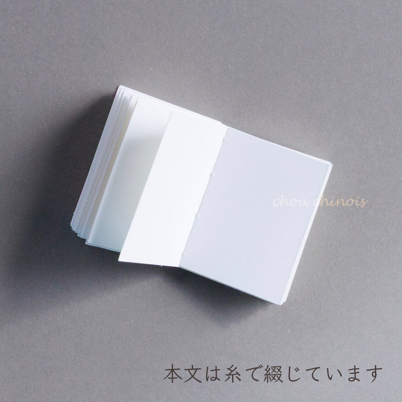 本文はホワイトクリーム色の無地紙を糸綴じで束ねています。