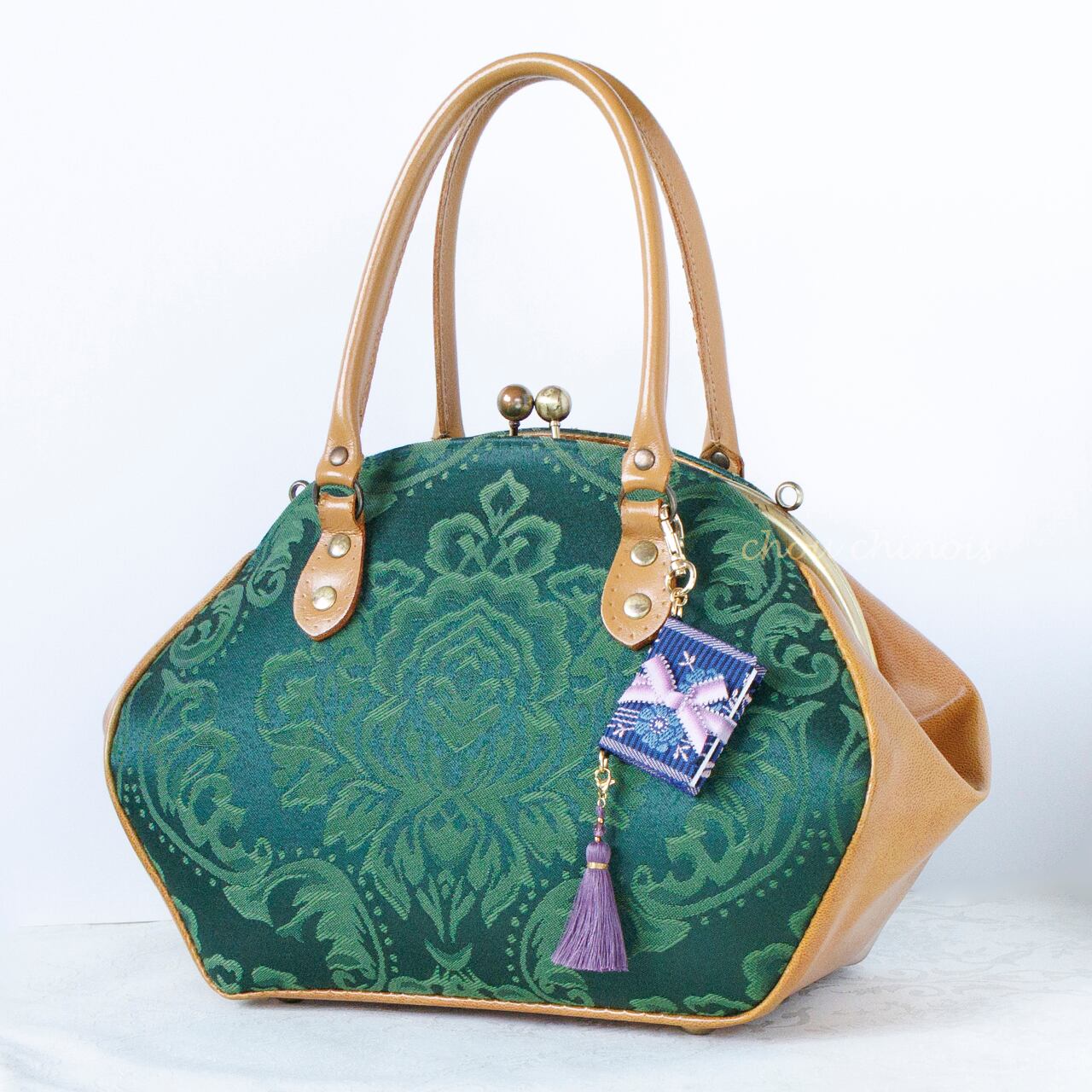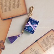 フランス製の幅広リボンを表紙に見立てて制作した、小さな本型チャームです。