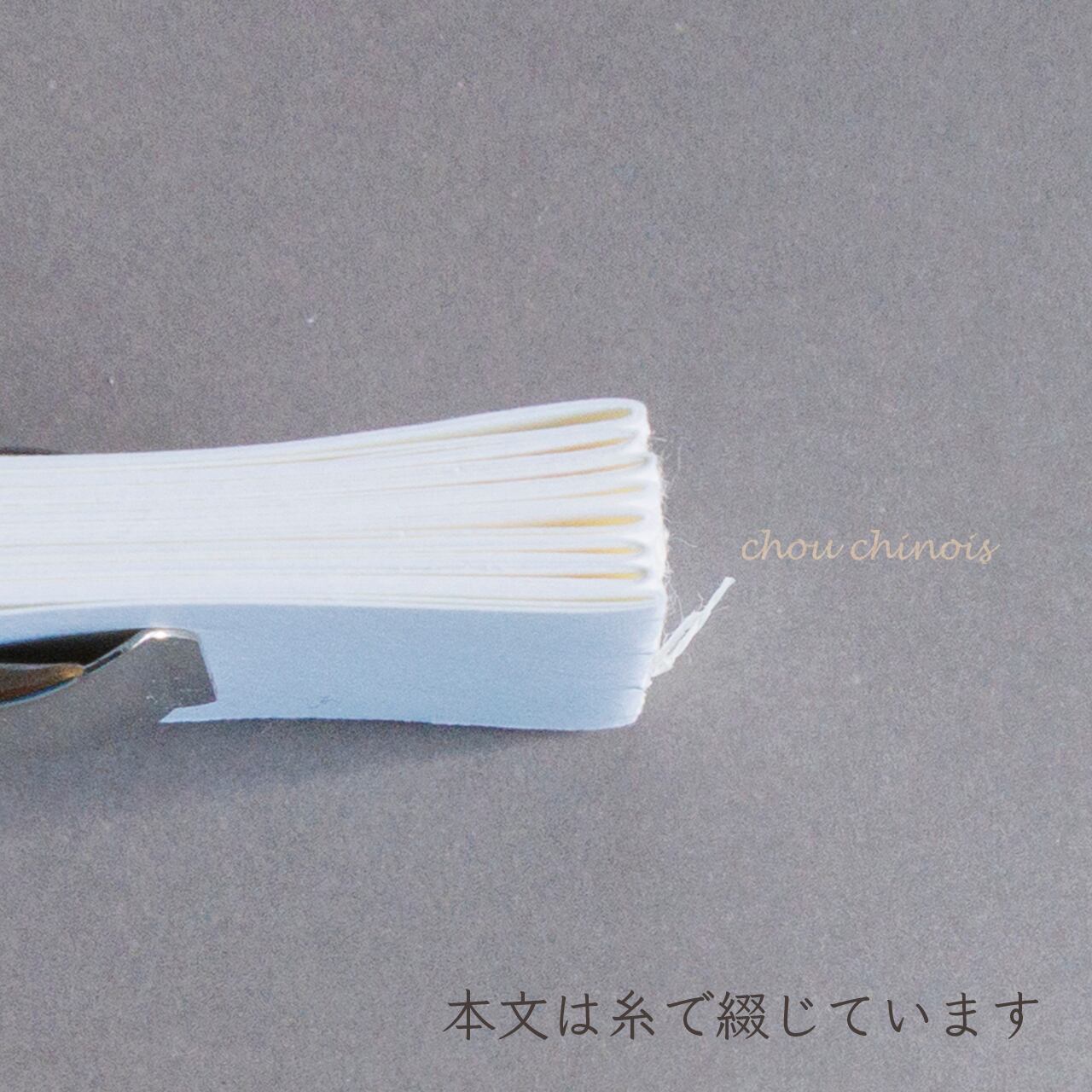 本文はホワイトクリーム色の無地紙を糸綴じで束ねています。
