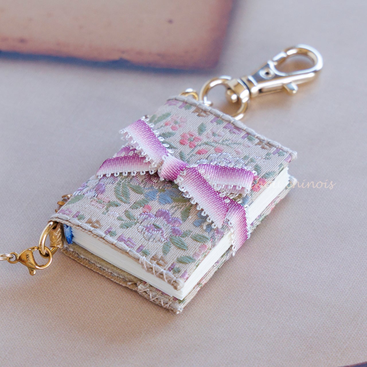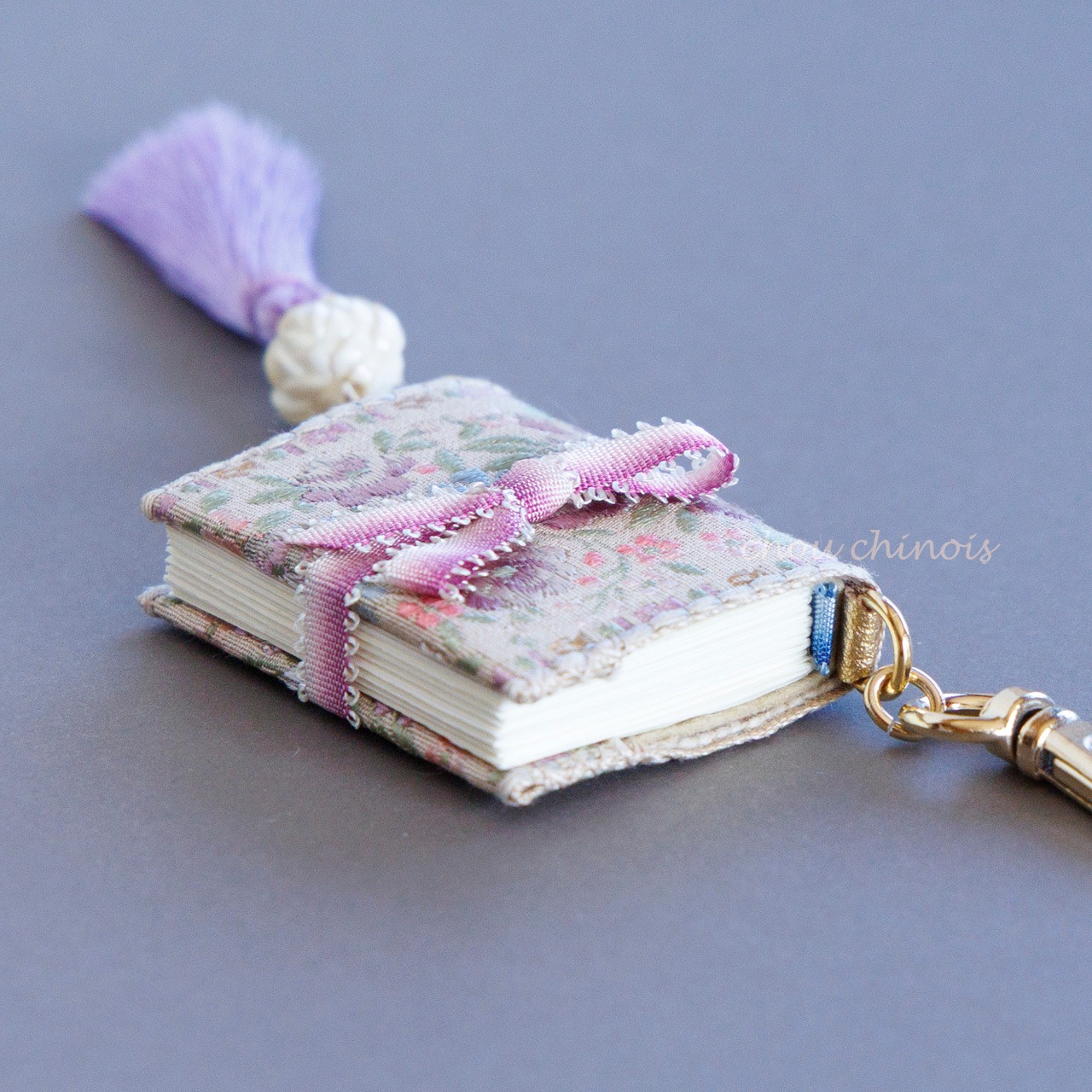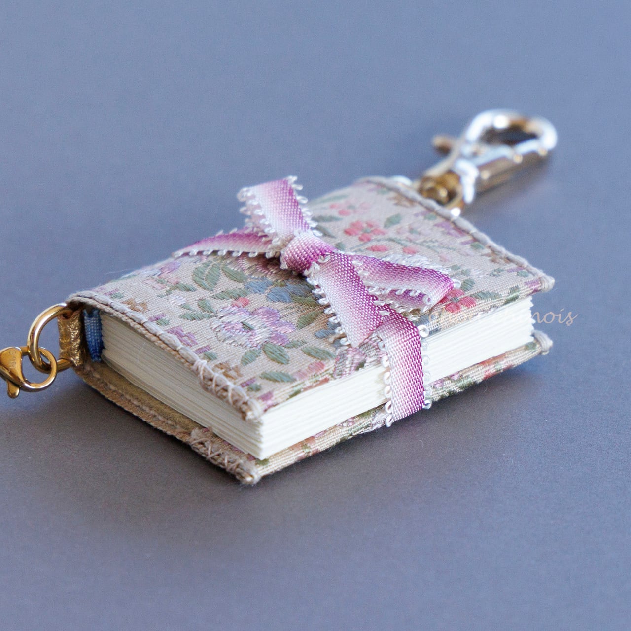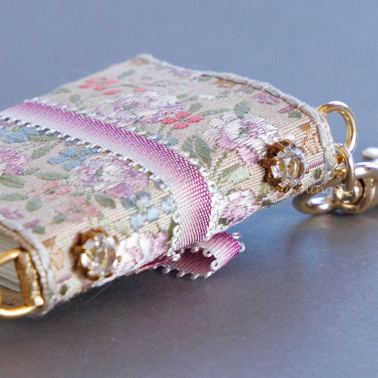 1920〜1930年代のフランスリボンを表紙に見立てて制作した、特別な本型チャームです。