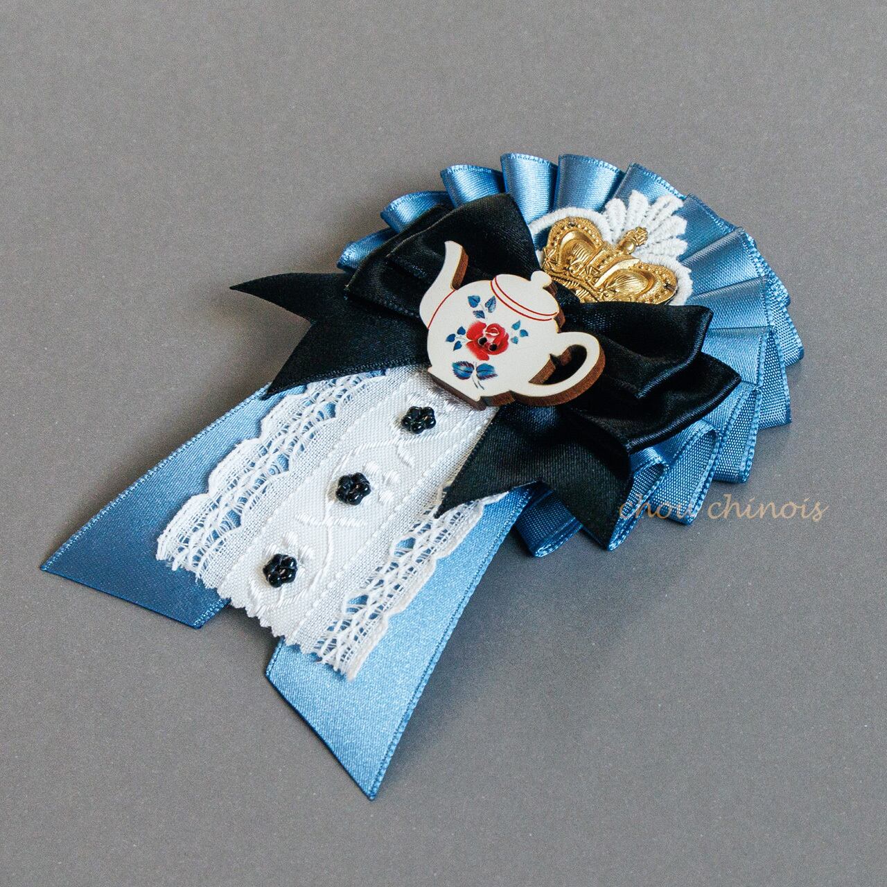 これまでに何度か制作してきました「TEA PARTY」ですが、この赤と青で描かれた薔薇のティーポットを添えたロゼットは今回制作の1点で最終となります。