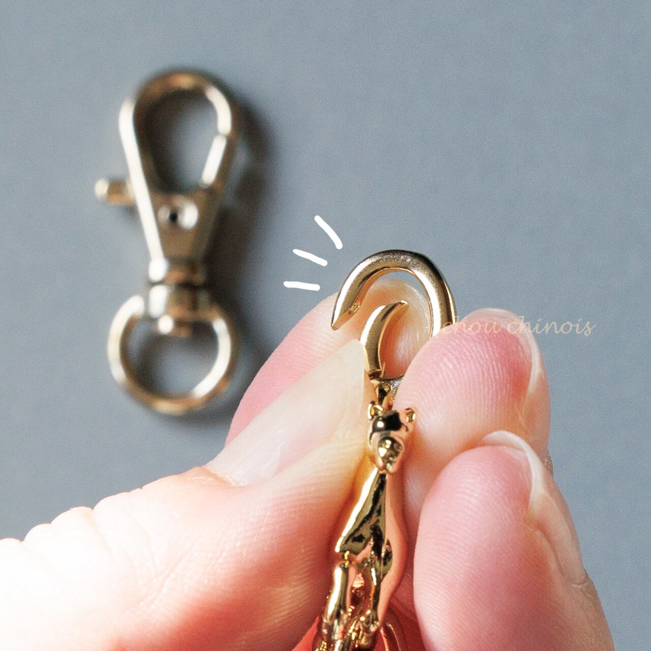 リュックのファスナーの引き手などの小さな輪に繋ぎたい時や、チェーンや紐などに通したい時は、ナスカンから外してアレンジをお楽しみください。
