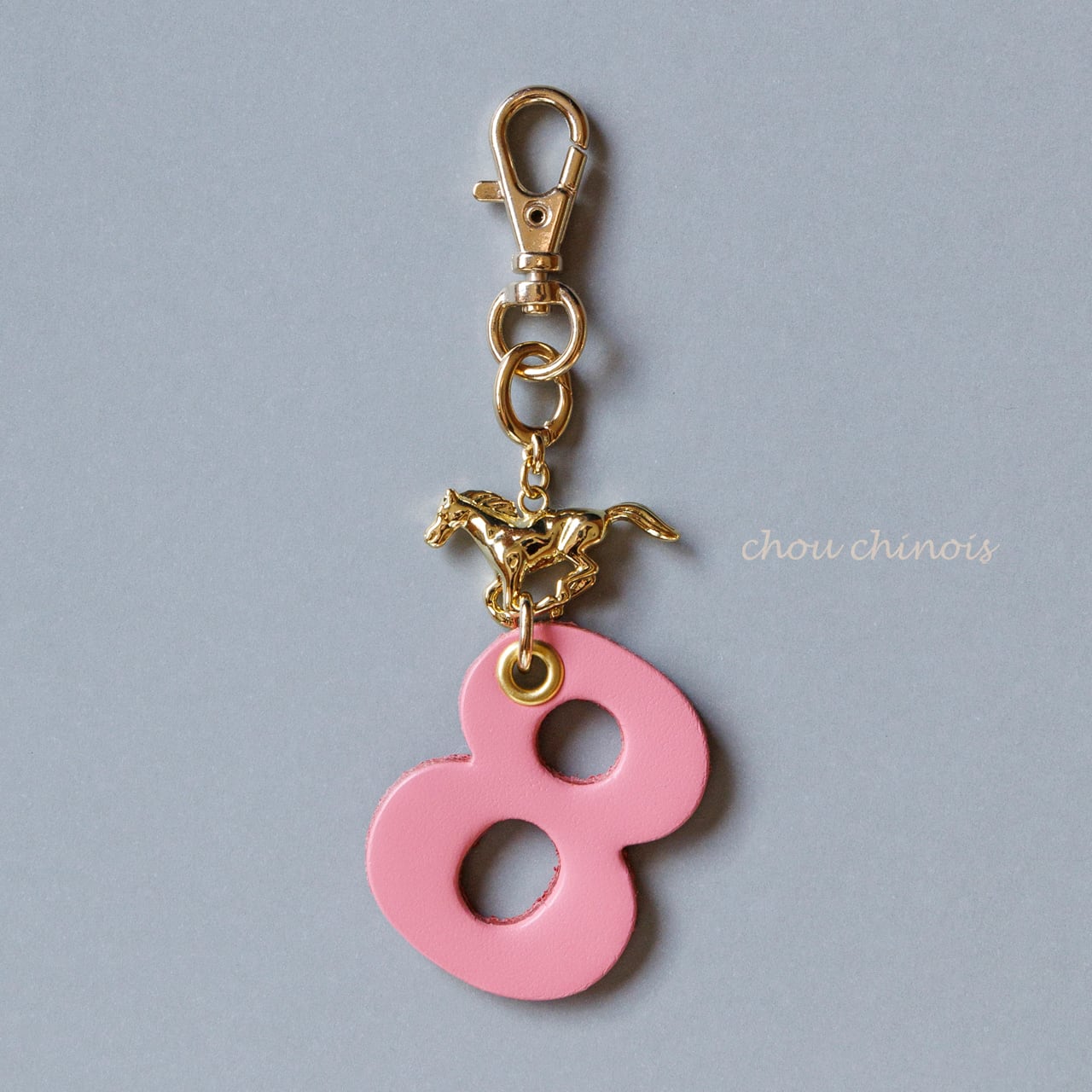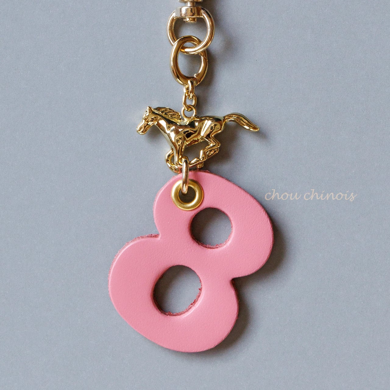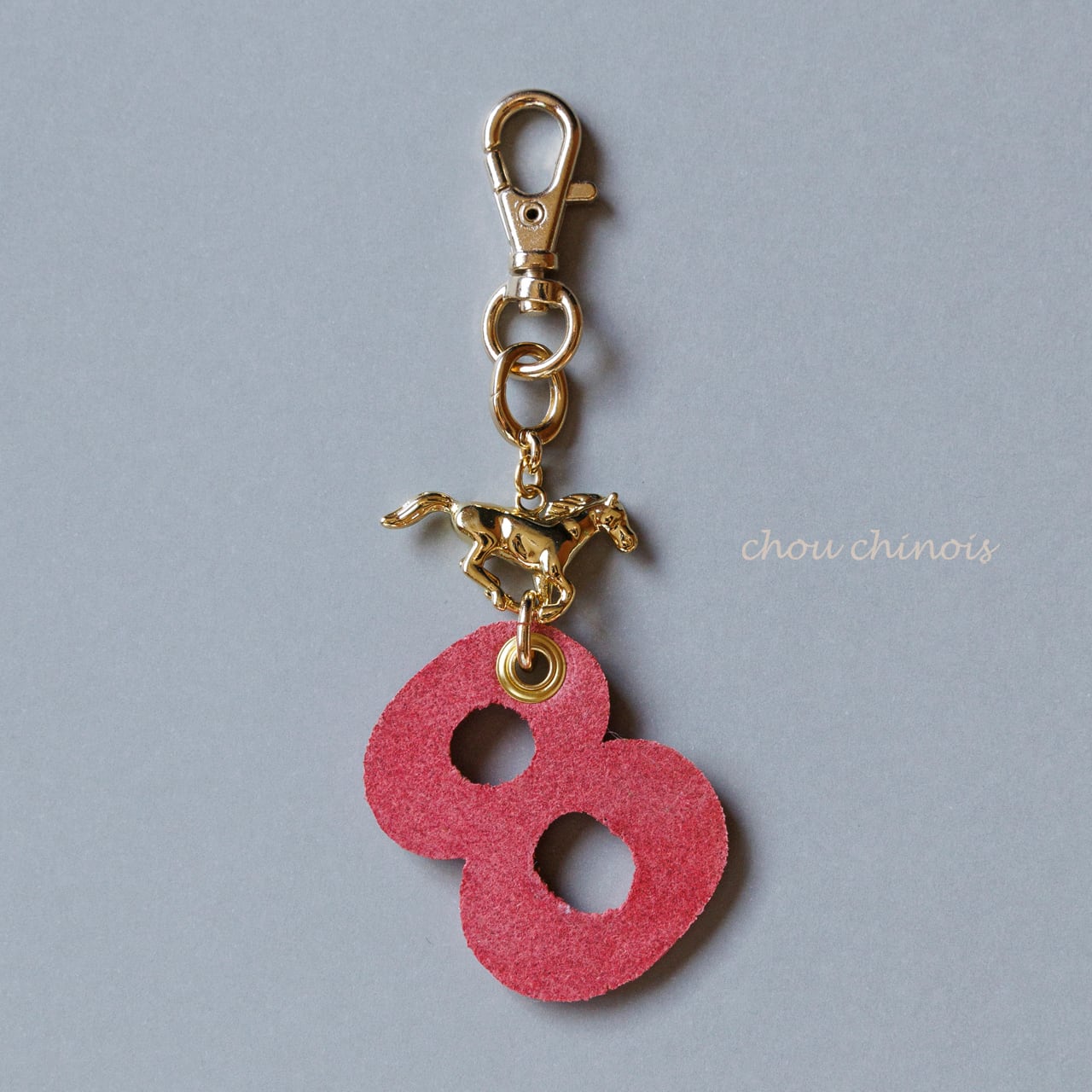 黄金のお馬さんとナスカンを繋ぐ楕円の金具は、小さなカラビナです。