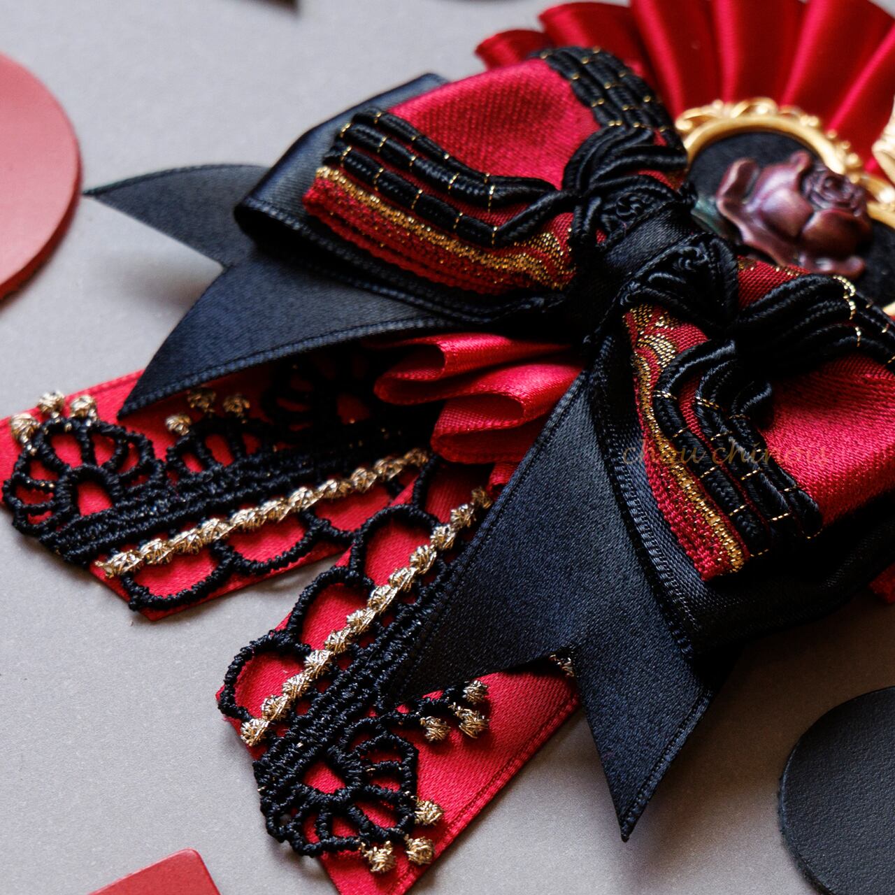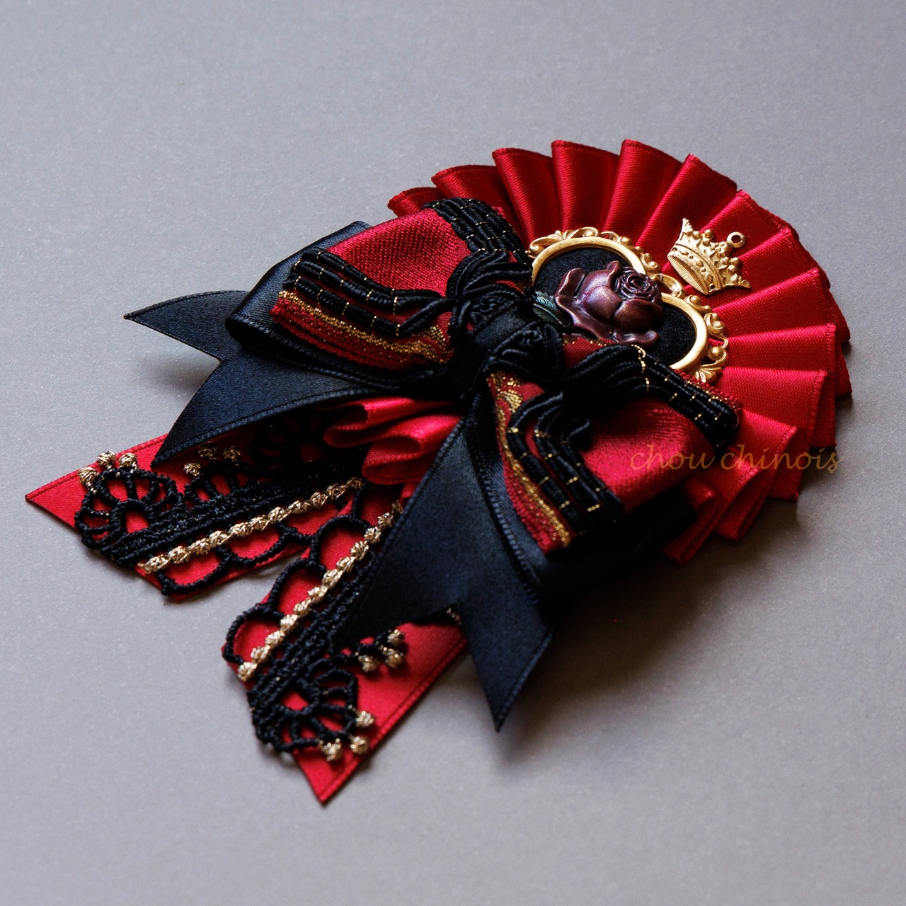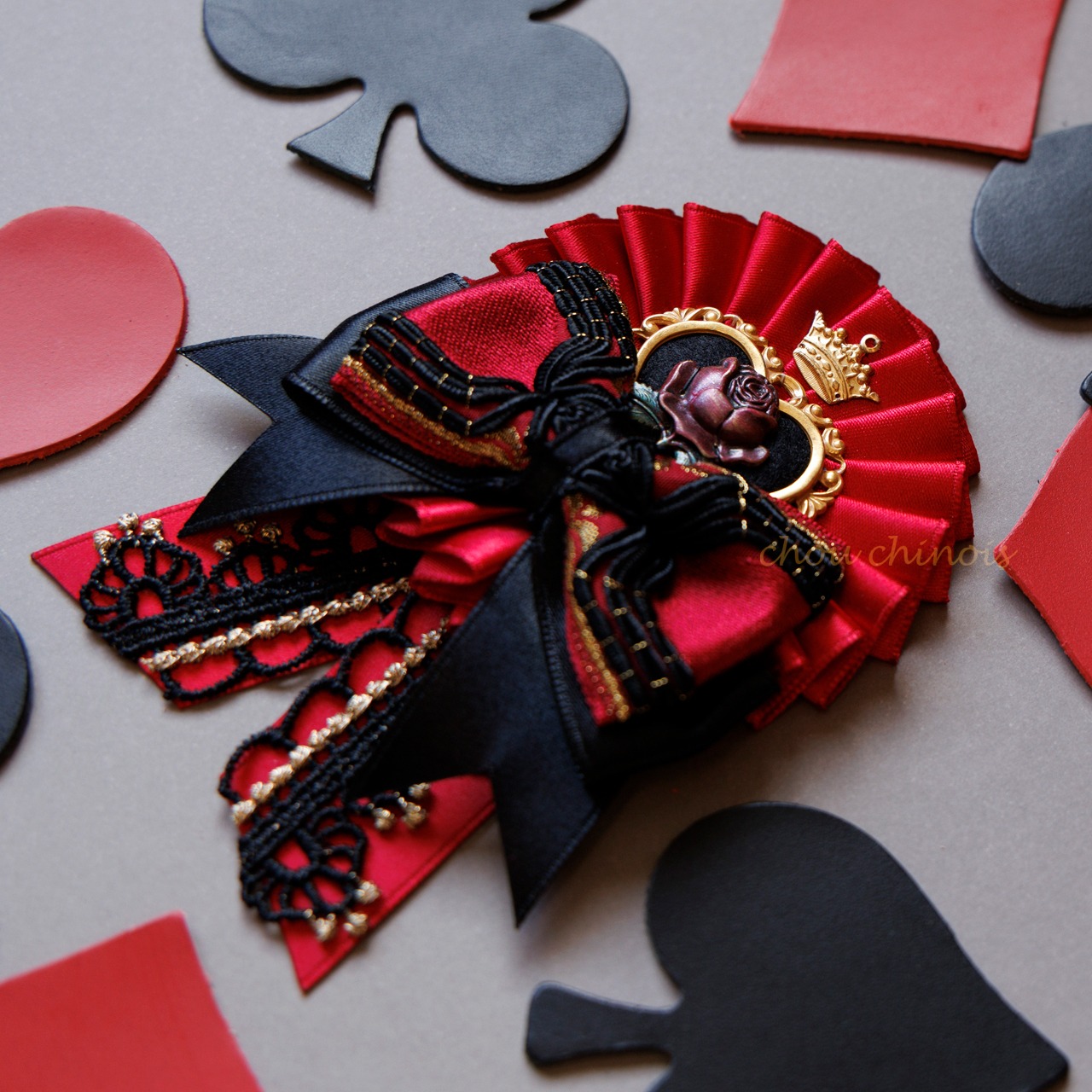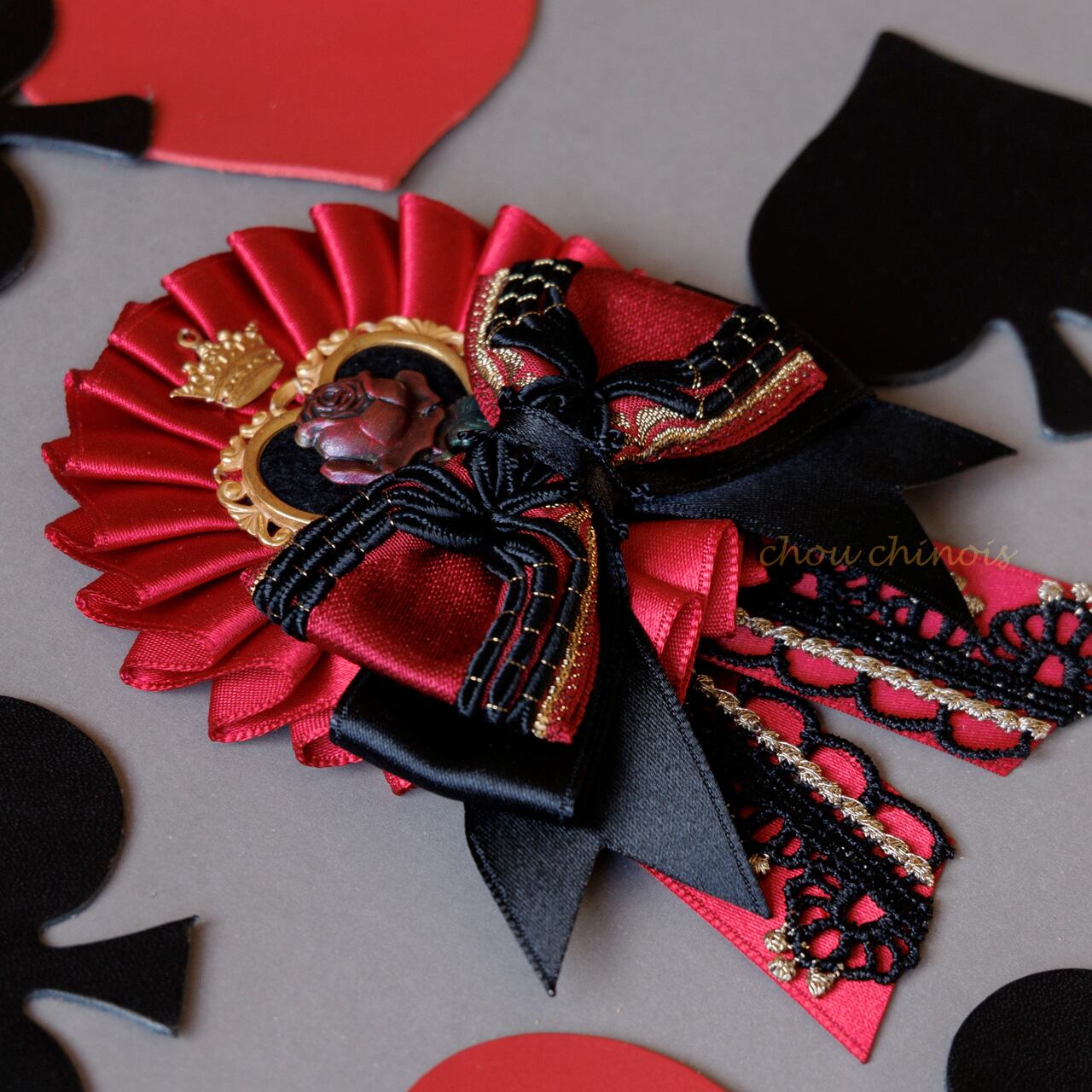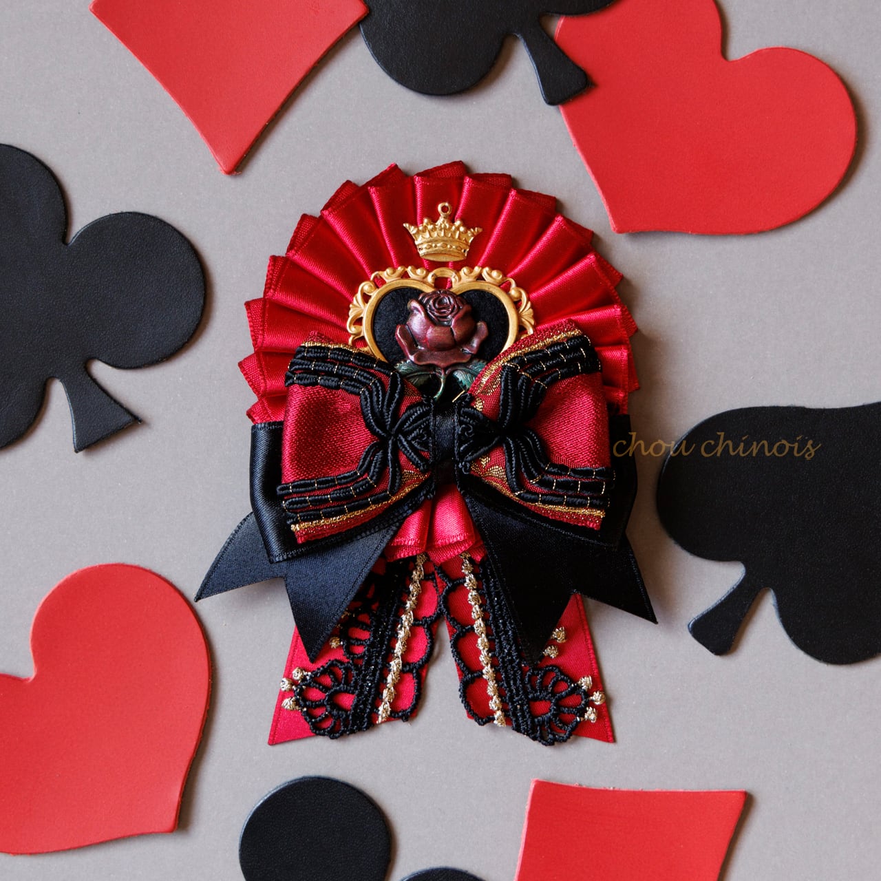 ハートの女王をイメージしたロゼットを制作致しました。