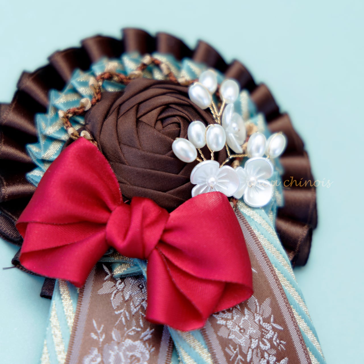 とってもボリューミィな為、ブローチとして身につけていただく際は、コートやジャケットのような厚手であったり、伸縮性の無い芯のある生地に飾って頂く事をおすすめ致します。