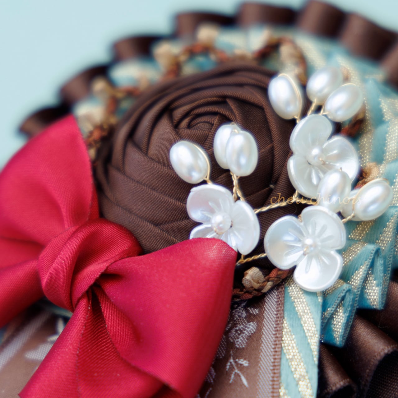 ・各パーツの固定の際は最後に針と糸でしっかり縫い合わせておりますが、強い衝撃を受けると変形したり、使用している生地やリボンが傷んだりする可能性がございます。優しくお取り扱いをお願い致します。