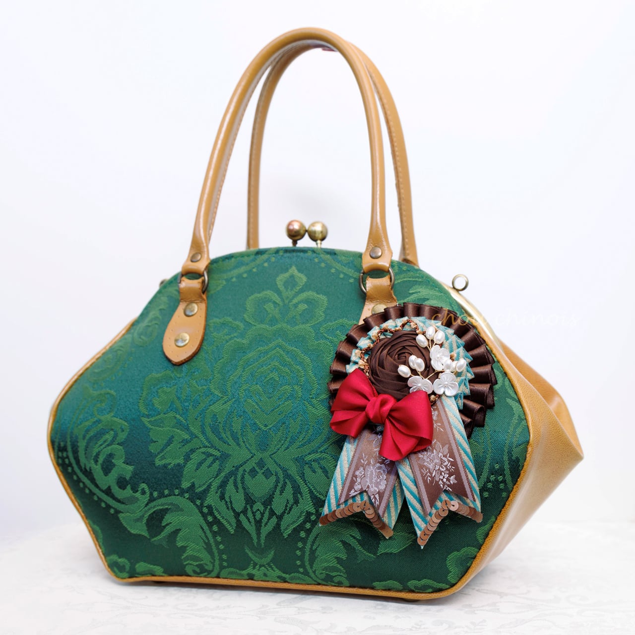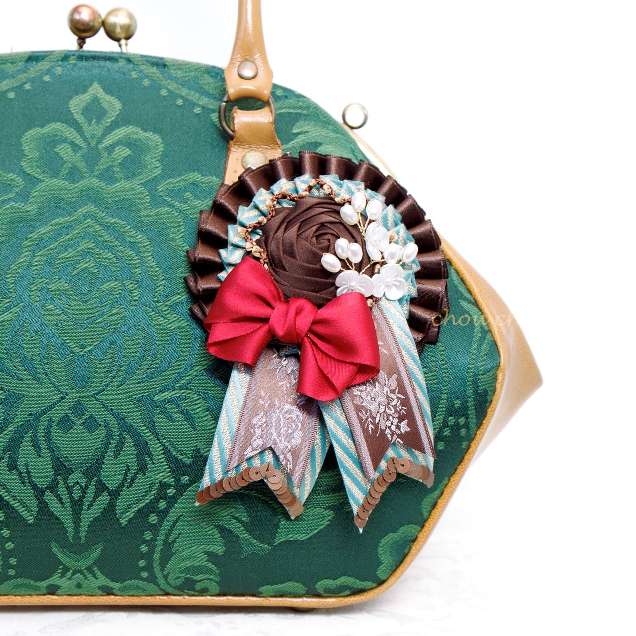 ・特に革やエナメル製のバッグに飾った場合、ブローチ金具が擦れて傷がついてしまう可能性がございます。その点をご了承頂いた上でお買い求めくださいませ。
