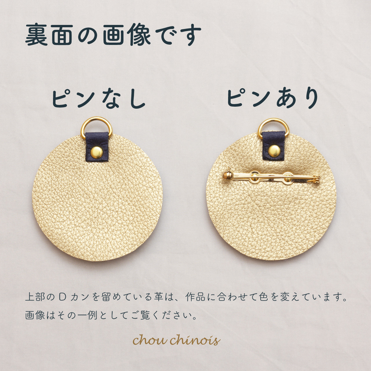 ・特に革やエナメル製のバッグに飾った場合、ブローチ金具が擦れて傷がついてしまう可能性がございます。その点をご了承頂いた上でお買い求めくださいませ。