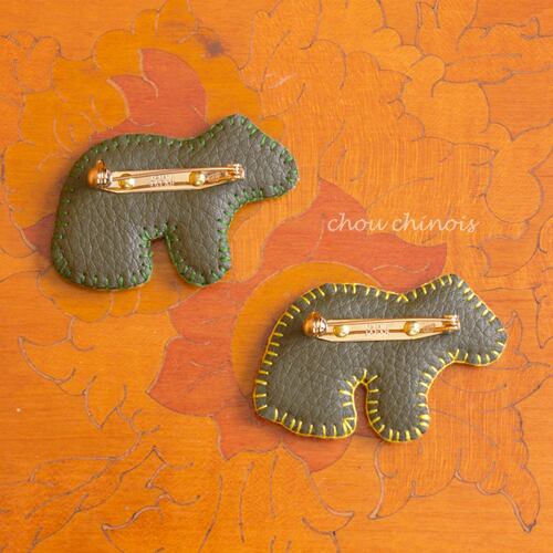 ブローチの縁取りの色を「森のみどり」と「お花のきいろ」にして各1点ずつ制作しました。